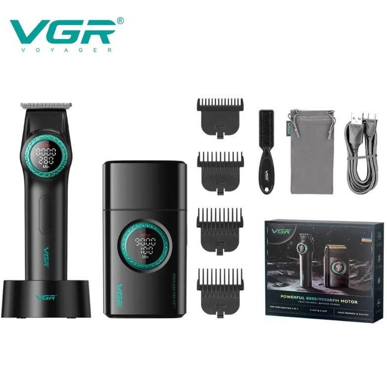 ست ماشین اصلاح حرفهای VGR Stepless Pro 2in1 | ماشین اصلاح و شیور پرقدرت v-377 & v-977