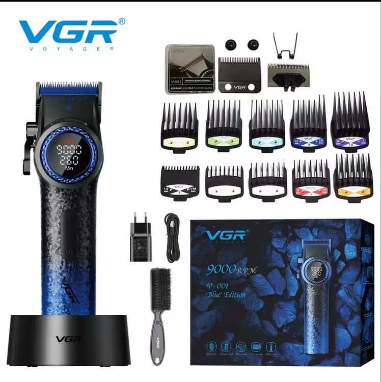 ماشین اصلاح سر حرفه ای وی جی آر مدل V-001 یکی از بهترین ابزارهای موجود برای اصلاح مو است. این دستگاه با توجه به ویژگی های فنی و کاربردی خود، یک انتخاب عالی برای کسانی است که به دنبال کیفیت و دقت در اصلاح مو هستند. این دستگاه با توان مصرفی 10 وات کار می کند و دارای باتری لیتیومی 21700 با ظرفیت 4600 میلی آمپر ساعت است که می تواند تا 260 دقیقه کار کند. مدت زمان لازم برای شارژ دستگاه در حالت شارژ سریع 180 دقیقه و در حالت شارژ آهسته 360 دقیقه است. این ماشین اصلاح، قابلیت تنظیم اندازه اصلاح در سایز های 1، 1.5، 2، 2.5 و 3 میلی متر را دارد. تیغه های این دستگاه از سرامیک ساخته شده اند که باعث می شود عمر طولانی تری داشته باشند و کمتر فرسایش پیدا کنند. این ماشین اصلاح دارای نور LED است که کمک می کند تا بهتر بتوانید اصلاح مو را انجام دهید. همچنین، بیشترین دور موتور این ماشین اصلاح بین 7000 تا 9000 دور بر دقیقه است و امکان تغییر سرعت در 21 سطح مختلف را دارد. این دستگاه دارای نمایشگر LED برای نمایش سرعت و زمان شارژ باقی مانده است. همچنین، دارای پوشش کربن شبه الماس است که دارای خواص منحصر به فردی مانند سختی بالا، مقاومت در برابر سایش و خوردگی است. این ماشین اصلاح با اقلام همراهی مانند برس تمیز کننده، روغن روان کننده، استند شارژر، آداپتور، کابل شارژ تایپ سی و 10 شانه با سایز 1.5، 3، 4.5، 6، 9، 12، 15، 18، 21 و 24 میلی متر عرضه می شود. این دستگاه قابل شستشو نمی باشد لذا از غوطه ور کردن آن در آب یا بردن آن زیر دوش خودداری کنید. هرگز از هوای کمپرس شده، پد شستشو، و مایعاتی مانند بنزین یا استون برای تمیزکاری آن استفاده نکنید. این ماشین اصلاح مجهز به باتری قابل شارژ است لذا از قرار دادن دستگاه در مجاورت آتش یا محیط های با دمای بالا خودداری کنید. همچنین این دستگاه دارای محافظت در برابر ولتاژ بیش از حد است و از ولتاژ بیشتر از 6.5 ولت جلوگیری می کند. در هنگام فول شارژ، دستگاه سه بوق میزند تا کاربر را از شارژ کامل دستگاه آگاه کند. نحوه استفاده از دستگاه هم به صورت بی سیم و هم با سیم است. برای استفاده از دستگاه، با زدن دکمه ON/OFF دستگاه روشن شده و با چرخش دستگیره به صورت ساعتگرد/ پادساعتگرد می توانید سرعت دستگاه را افزایش/ کاهش دهید.