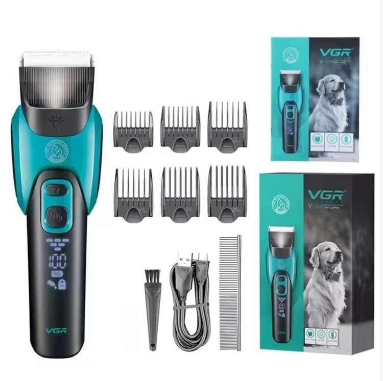 شانه حيوانات خانكى، كابل شارة USB، دفترجه راهنماى كاربر جنس تيغه فولاد ضد زنك ارتقا يافته اين ماشين اصلاح حيوانات براى محافظت از حيوان خانكى مورد علاقه شما در برابر آسيب بسيار ايمن است. حتى اكر مبتدى هستيد، مى توانيد با خيال راحت حيوان خانكى خود را اصلاح كنيد صداى كم و قدرت قوى ماشين اصلاح vgr v-208 حيوانات خانكى با موتور 10 وات، لرزش كم وطراحى فوق العاده بى صدا، به اندازه كافى قدر تمند ميباشد براى اصلاح موهاى ظريف، كوتاه و درشت.صداى كار كمتر از 50 دسى بل است، حيوانات خانكى ديكر از اصلاح نمى ترسند.تجربه بى سيم : باترى ليتيوم يونى با ظرفيت 2000 ميلى آمير، كه مى تواند 1.5 ساعت با يك بار شارر دوام بياورد.