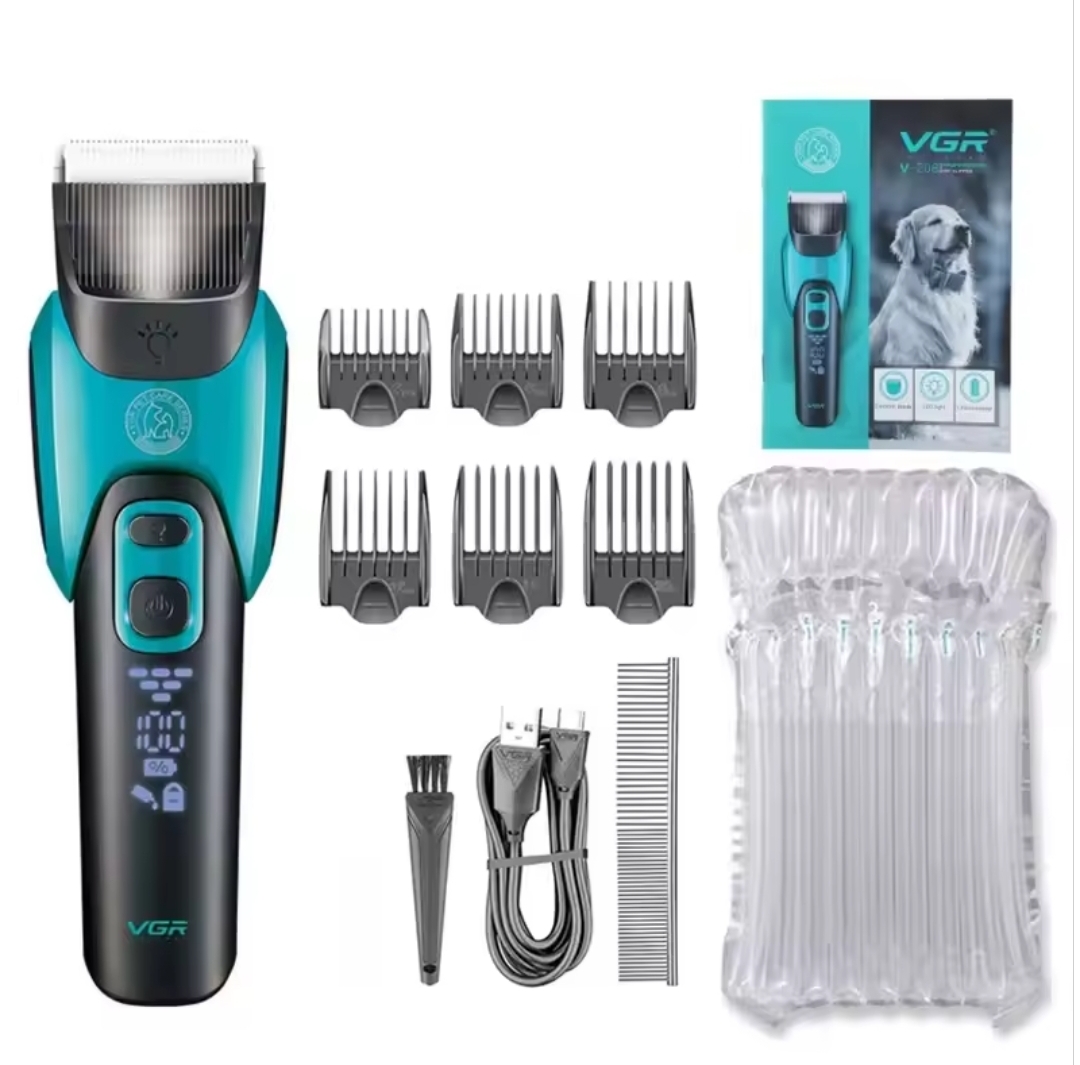 شانه حيوانات خانكى، كابل شارة USB، دفترجه راهنماى كاربر جنس تيغه فولاد ضد زنك ارتقا يافته اين ماشين اصلاح حيوانات براى محافظت از حيوان خانكى مورد علاقه شما در برابر آسيب بسيار ايمن است. حتى اكر مبتدى هستيد، مى توانيد با خيال راحت حيوان خانكى خود را اصلاح كنيد صداى كم و قدرت قوى ماشين اصلاح vgr v-208 حيوانات خانكى با موتور 10 وات، لرزش كم وطراحى فوق العاده بى صدا، به اندازه كافى قدر تمند ميباشد براى اصلاح موهاى ظريف، كوتاه و درشت.صداى كار كمتر از 50 دسى بل است، حيوانات خانكى ديكر از اصلاح نمى ترسند.تجربه بى سيم : باترى ليتيوم يونى با ظرفيت 2000 ميلى آمير، كه مى تواند 1.5 ساعت با يك بار شارر دوام بياورد.