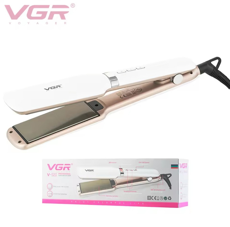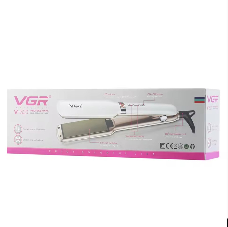 اتوی موی وی جی آر مدل V-522 یک اتو موی کاملا حرفه ای با کیفیت بالا و دارای بدنه ای از جنس ABC که فوق العاده محکم می باشد و در اثر ضربات فیزیکی احتمالی مقاوم است، این اتو مو با آخرین تکنولوژی های روز دنیا تولید شده که دارای صفحاتی از جنس سرامیک بوده و به مو های شما هیچ گونه آسیبی وارد نمی کند، زیرا در صفحات حرارتی، حرارت به صورت پراکنده پخش می شود.اتو موی وی جی آر V-522 دارای صفحه ی نمایشگر دیجیتالی بوده که میزان دما را نشان می دهد و محدوده ی دمای آن از150تا 230درجه ی سانتی گراد قابل تنظیم می باشد، شما با این میزان حرارت میتوانید موهایتان را کاملا صاف و براق کنید، سیم این اتو مو دو متر بوده و در قسمت وصل شده به بدنه قابلیت چرخش ۳۶۰ را دارد این این باعث آزادی عمل بسیار زیادی برای شما می شود. از این اتوی مو هم برای استفاده ی شخصی و هم برای سالن های آرایشی می شود استفاده کرد زیرا باعث صرفه جویی در زمان شده و سرعت عمل آرایشگران را بالا می برد چون در کمتر از ۳۰ ثانیه کاملا گرم شده و قابل استفاده می باشد همچنین این دستگاه دارای حلقه آویز بوده و طول عمر بسیار زیادی دارد.محصولات وی جی آر دارای کیفیتی اروپایی و مورد تایید استاندارد اروپا CE می باشد.