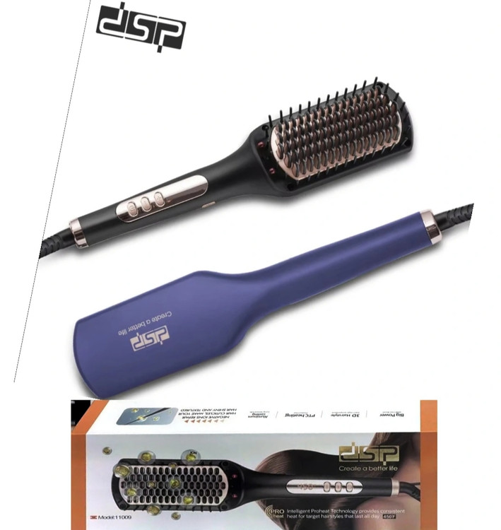 برس حرارتی دی اس پی مدل DSP-11009، ابزاری جمعوجور و کارآمد برای صاف کردن و فرمدهی سریع موها است که استفاده روزانه را در روتین آرایشی ساده و لذتبخش میکند. ابعاد دستگاه ۲۷ × ۸ × ۵ سانتیمتر و وزن ۵۰۰ گرم است و طراحی سبک و ارگونومیک، کنترل کامل و راحتی در دست را فراهم میکند. صفحات آلومینیومی همراه با دندانههای سرامیکی گرمای یکنواخت و دوام بالایی ارائه میدهند و حرکت نرم و بدون کشش روی موها را تضمین میکنند. این برس حرارتی با شش سطح تنظیم دما از ۱۳۰ تا ۲۳۰ درجه سانتیگراد، امکان تطبیق با انواع جنس مو و نیازهای مختلف حالتدهی را فراهم میکند. زمان گرم شدن دستگاه تنها حدود یک دقیقه است تا سریع آماده به کار شود و نشانگر LED وضعیت دما و عملکرد را به وضوح نمایش میدهد. طول سیم ۱.۵ متری آزادی حرکت کافی در حین استفاده را ایجاد کرده و فناوری تولید یون، الکتریسیته ساکن را کاهش داده و درخشندگی طبیعی مو را حفظ میکند. برای افزایش ایمنی، خاموشی خودکار پس از شصت دقیقه در نظر گرفته شده تا از روشن ماندن بدون استفاده جلوگیری شود. با تمام این ویژگیها، DSP-11009 ابزاری مطمئن و حرفهای برای دستیابی به موهای صاف، درخشان و حالتدار در کوتاهترین زمان است و تجربهای روان و راحت در هر بار استفاده ارائه میدهد.