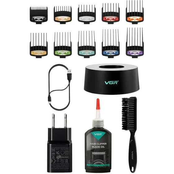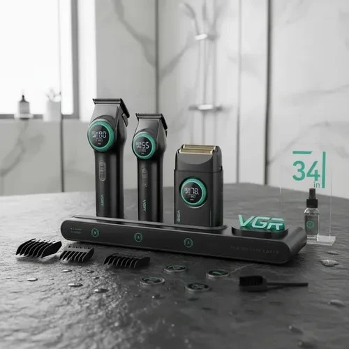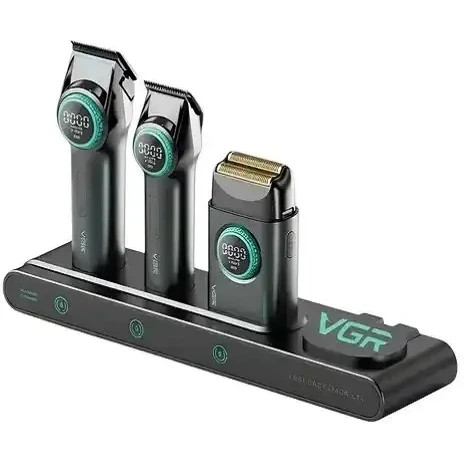 ست حرفهای ماشین اصلاح وی جی آر (VGR) شامل سه دستگاه کاربردی برای اصلاح مو و صورت است. این ست با کیفیت ساخت بالا و طراحی ارگونومیک، انتخابی عالی برای استفاده شخصی و آرایشگاهی است.