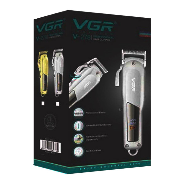 ماشین اصلاح و خط زن شارژی وی جی آر VGR V-278 از برند وی جی آر با استفاده از تکنولوژی برش مستقیم و تیغه ی استیل ضد زنگ؛اصلاحی دقیق و بدون التهاب را به دنبال دارد. همچنین قابلیت شارژ سریع نیز برای دستگاه میسر شده است. تیغه ی T شکل قابل تنظیم در ماشین اصلاح V-278 قابلیت اصلاح با اندازه 0٫1 تا 2 میلی متر را دارد که قابلیت اضافه شدن شانه و تغییر طول برش را نیز دارند.